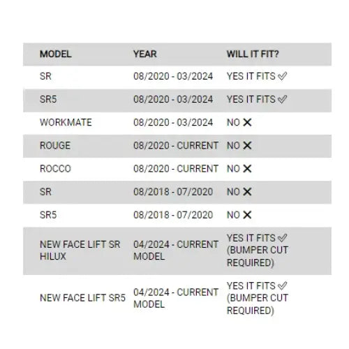 IF HAVE FACTORY WIDE FLARES NEED TO ORDER WIDEBODY HILUX BULLBAR