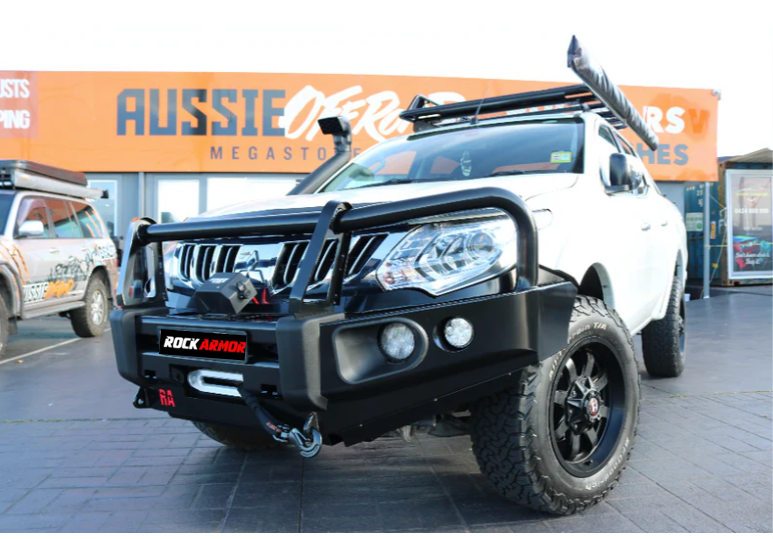 Designed & tested in Australia, Rockarmor’s Elite steel Bull bar provides your vehicle with the ultimate in front end protection. Making sure air flow to the engine is maintained, the Rockarmor bull bar is manufactured with a heavy duty 63mm diameter cross bar which protects the full front of the vehicle against any potential animal strikes that may harm areas like your head lights, front grill and engine components.  Designed to be functional for vehicles that drive both on road & off road, the Elite Bull bar has been engineered to store vital accessories such as a Winch, UHF Antenna, safety flags, driving lights plus allowance of a high lift jack recovery. The Elite bull bar comes complete with L.E.D fog lights, L.E.D indicators, under body stone guards and is finished with a high quality powder coat that will withstand Australia’s harsh weather conditions. 100% ADR Compliant, and Air Bag approved, Rockarmor’s Elite bull bar is put through a strict set of tests that gives you confidence your vehicle will be protected at all times.