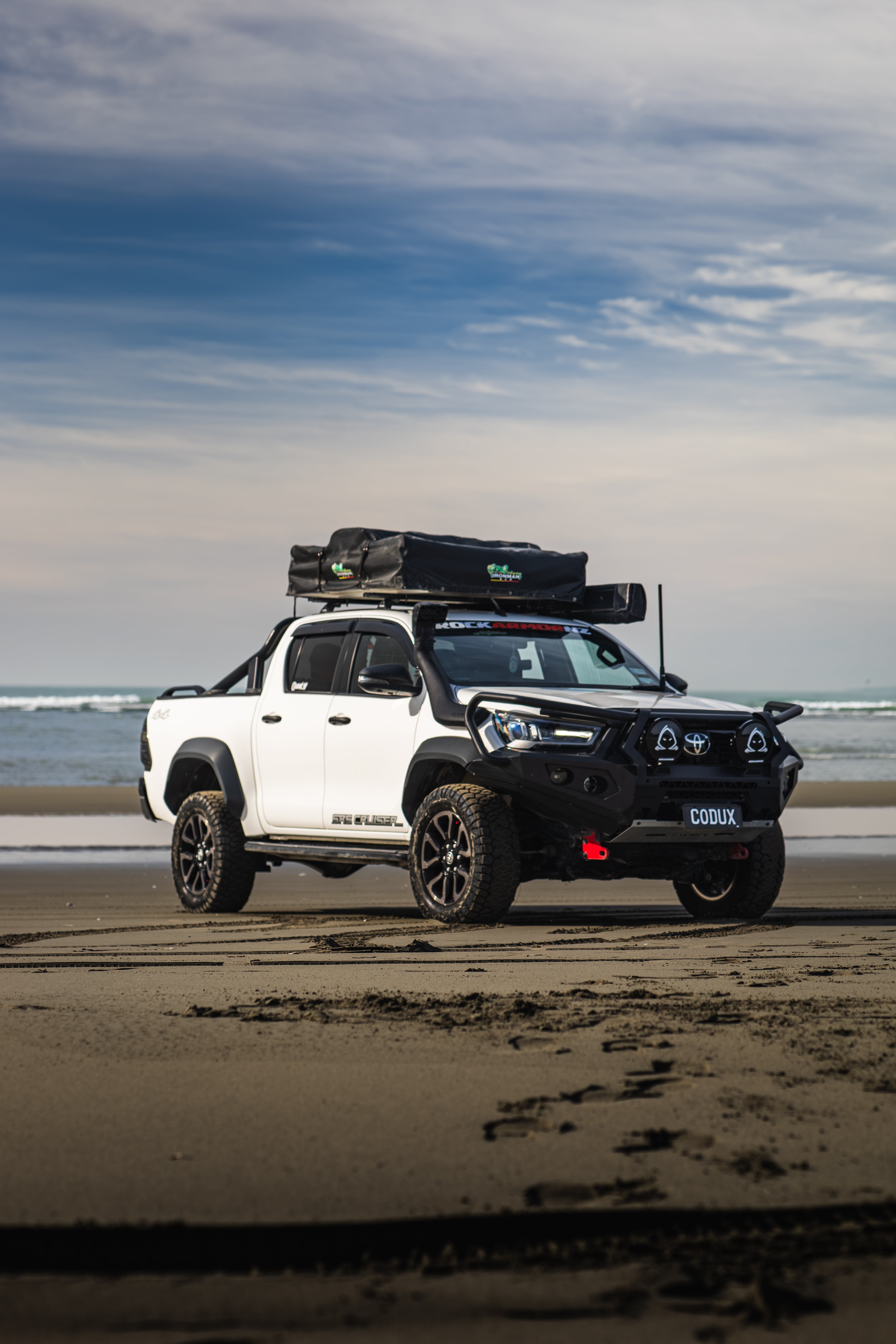 Designed to be functional for vehicles that drive both on road & off road, the GT bullbar has been engineered to store vital accessories such as a Winch, UHF Antenna, safety flags, driving lights plus allowance of a high lift jack recovery. The design of the GT bullbar was also designed to give you maximum approach angle when offroading and enhanced your truck with a aggressive offroad look.
