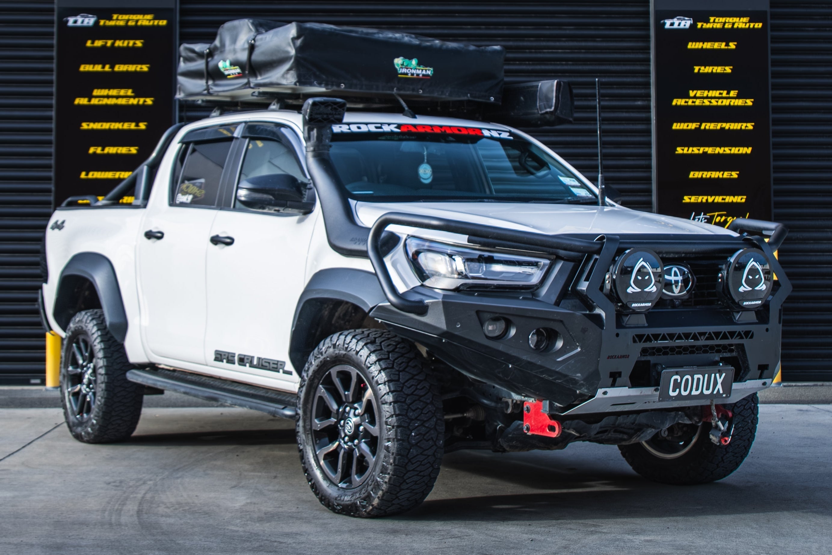 As well as offering your Hilux with maximum frontal protection, The Rockarmor GT bullbar has been designed to improve your Hilux's off road experience with several features that include, higher approach angles, Built in Rated Recovery points for off road recoveries, and provisions for vital accessories that includes, electric winches, driving lights & uhf communication.