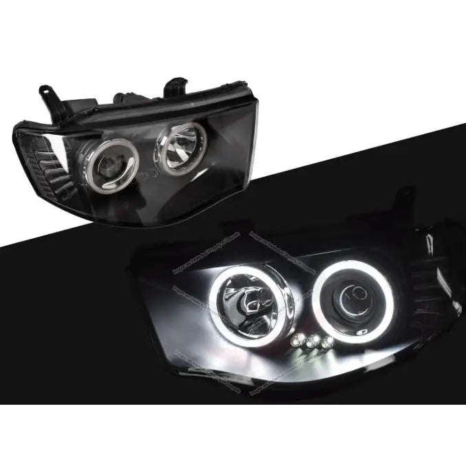 Black LED Angel Eyes Projector Headlights For Mitsubishi Triton MN ML 2006~2015