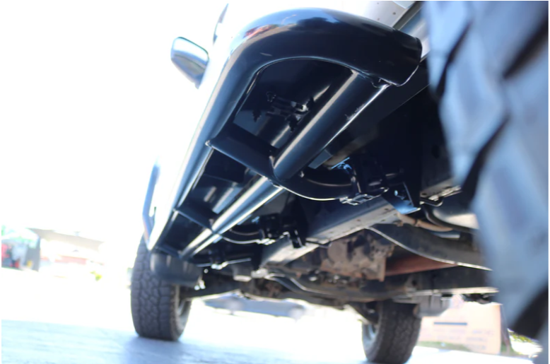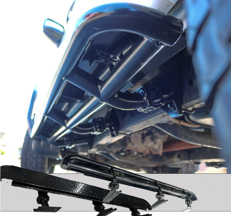 Each step features a modular front cap, that can be removed, which then allows for the connectivity of a Brush Bar side rail, that can be connected to your vehicle’s bull bar, providing your font fenders with protection from any side impact collision’s or potential animal strikes.