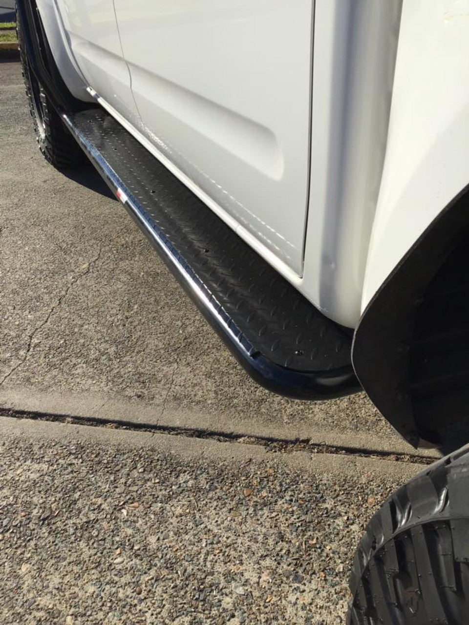 Each step features a modular front cap, that can be removed, which then allows for the connectivity of a Brush Bar side rail, that can be connected to your vehicle’s bull bar, providing your font fenders with protection from any side impact collision’s or potential animal strikes.