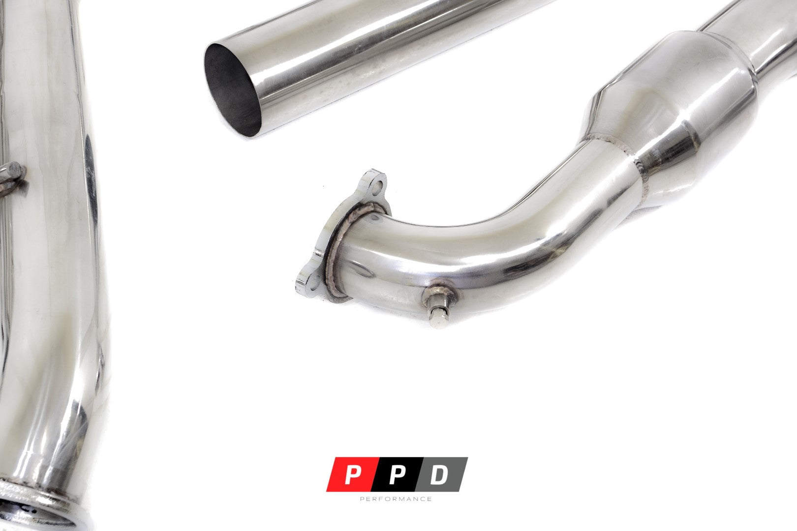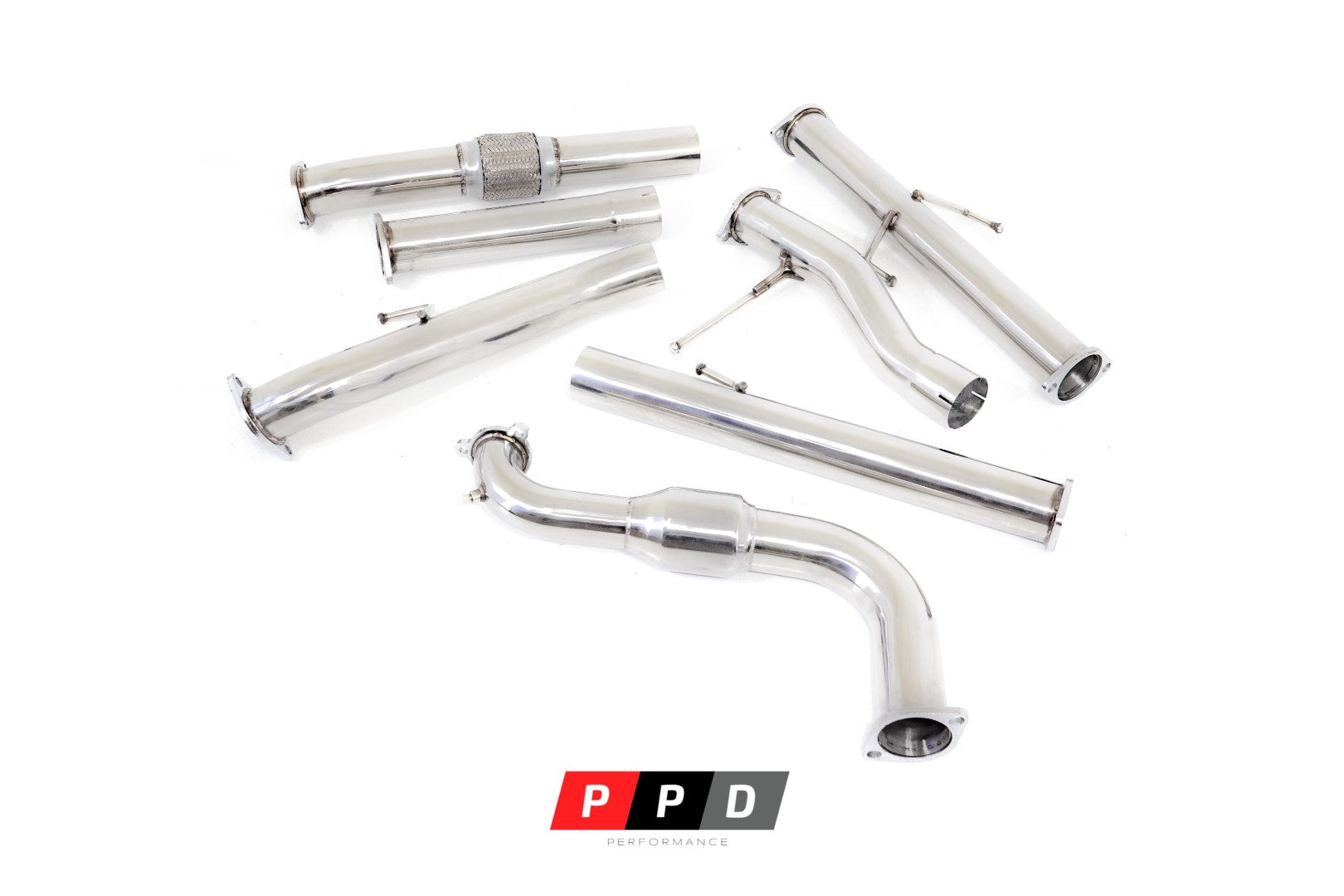 Replace the restrictive factory exhaust system with this brand new PPD Performance Polished Stainless Steel unit.