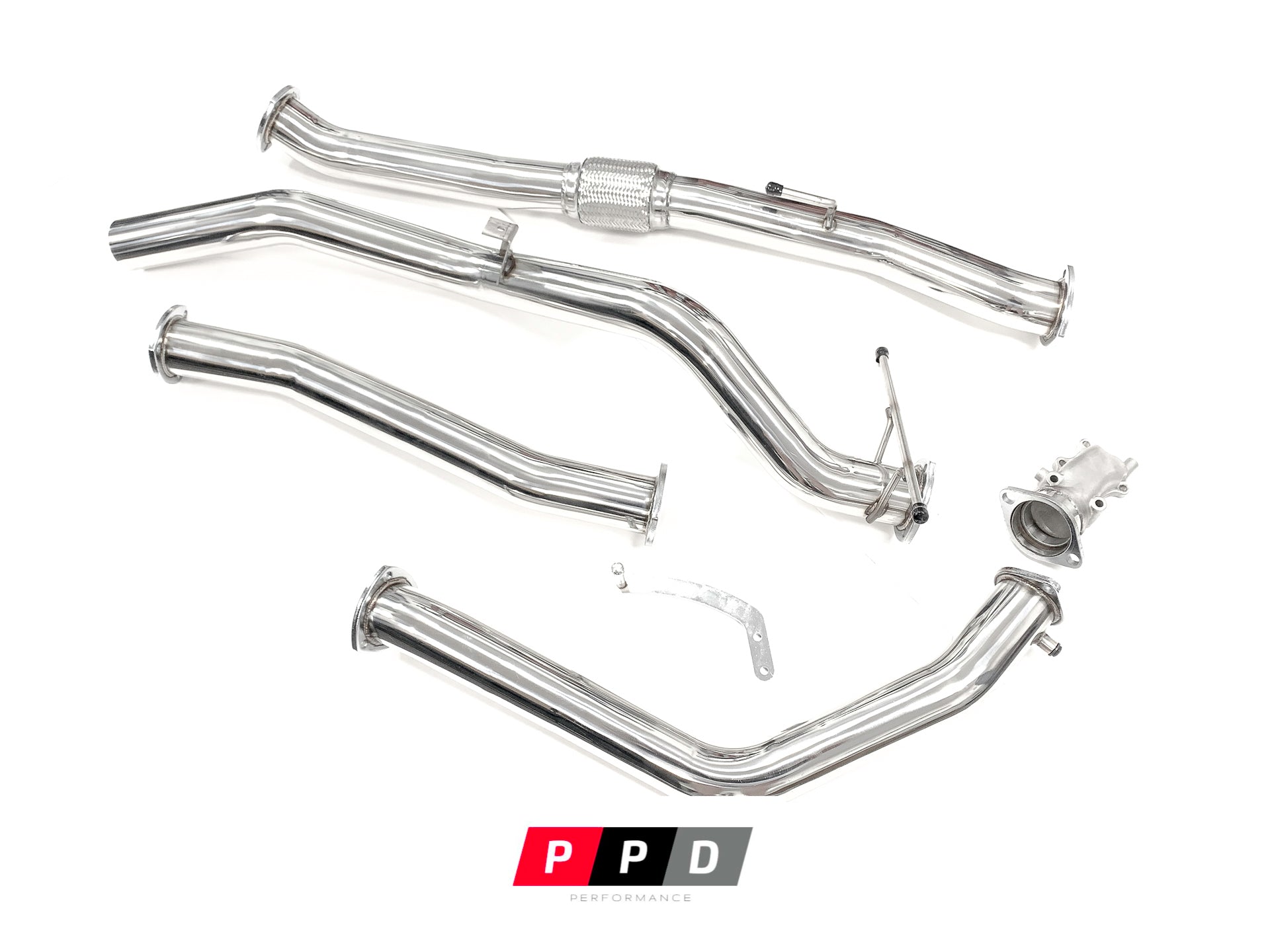 Replace the restrictive factory exhaust system with this brand new PPD Performance Polished Stainless Steel unit.