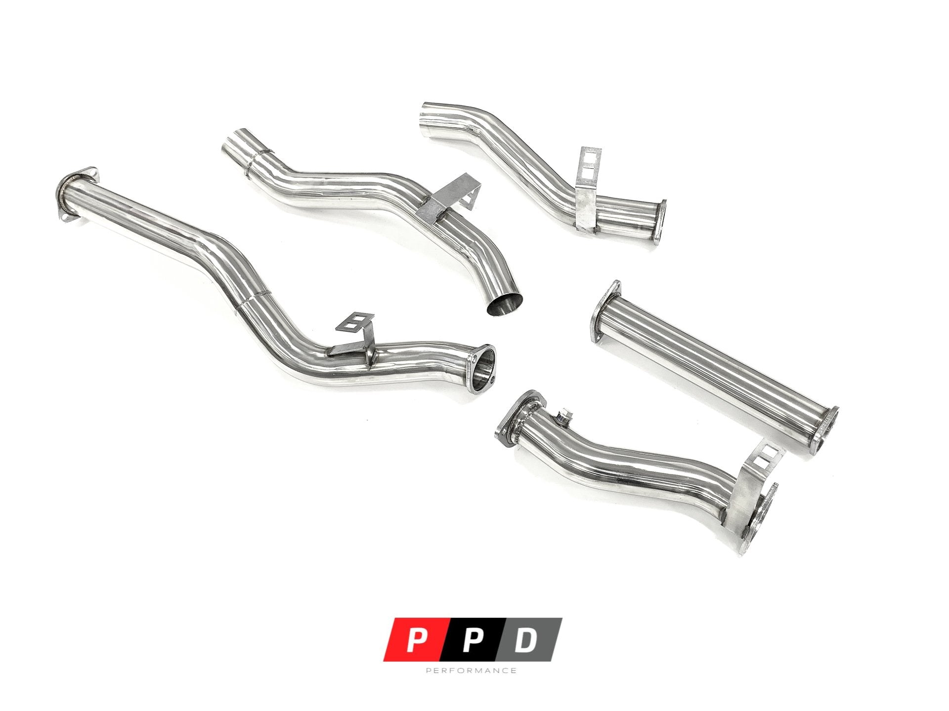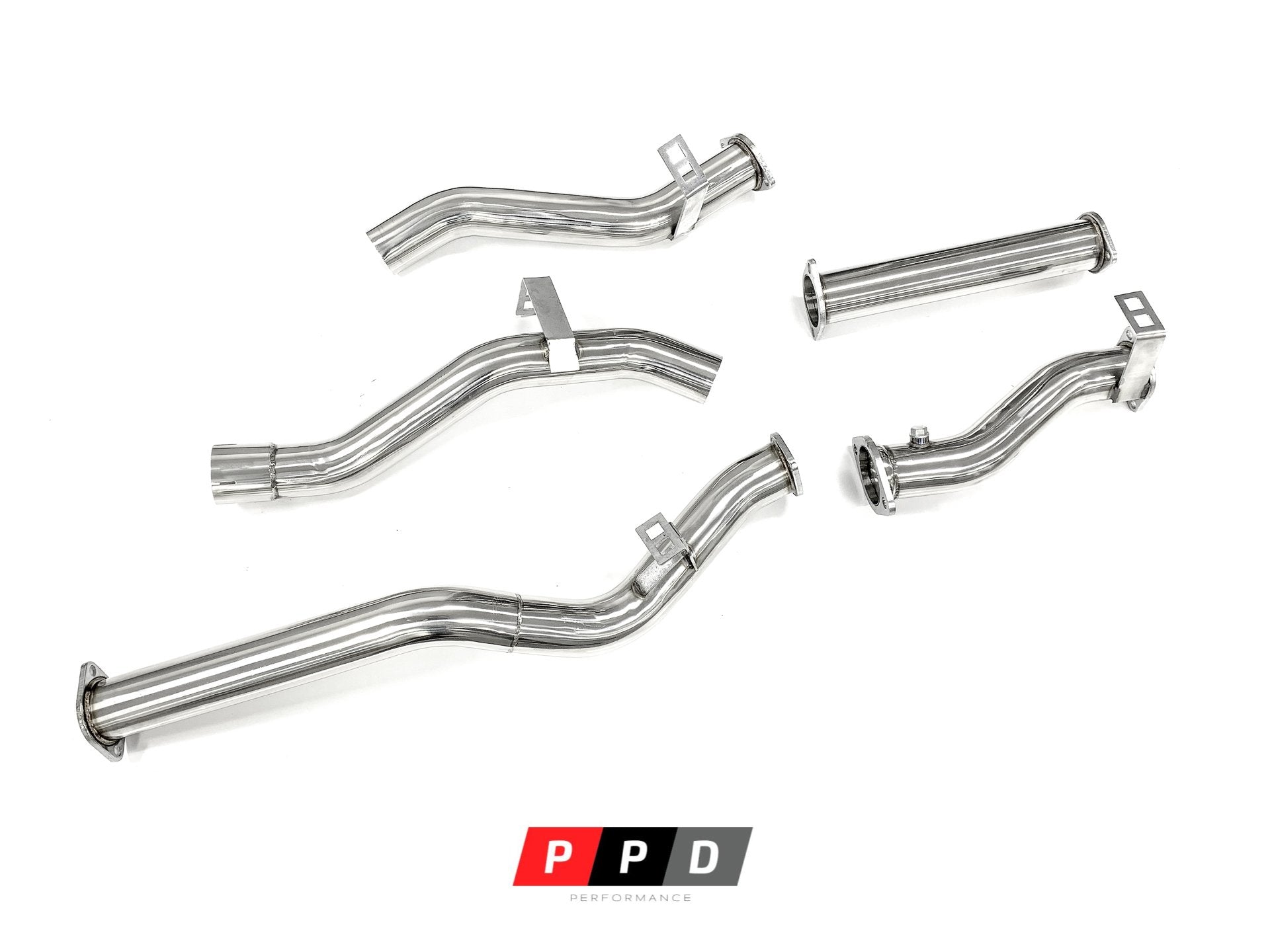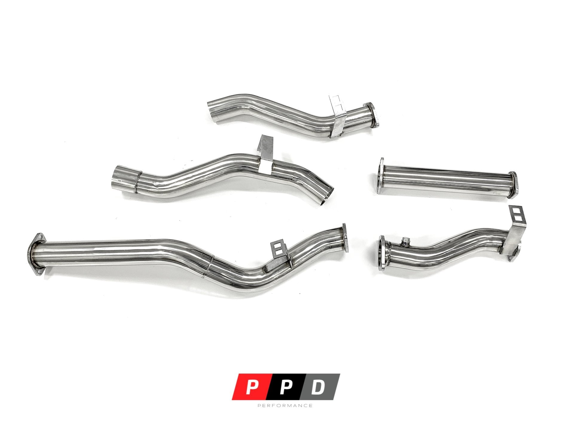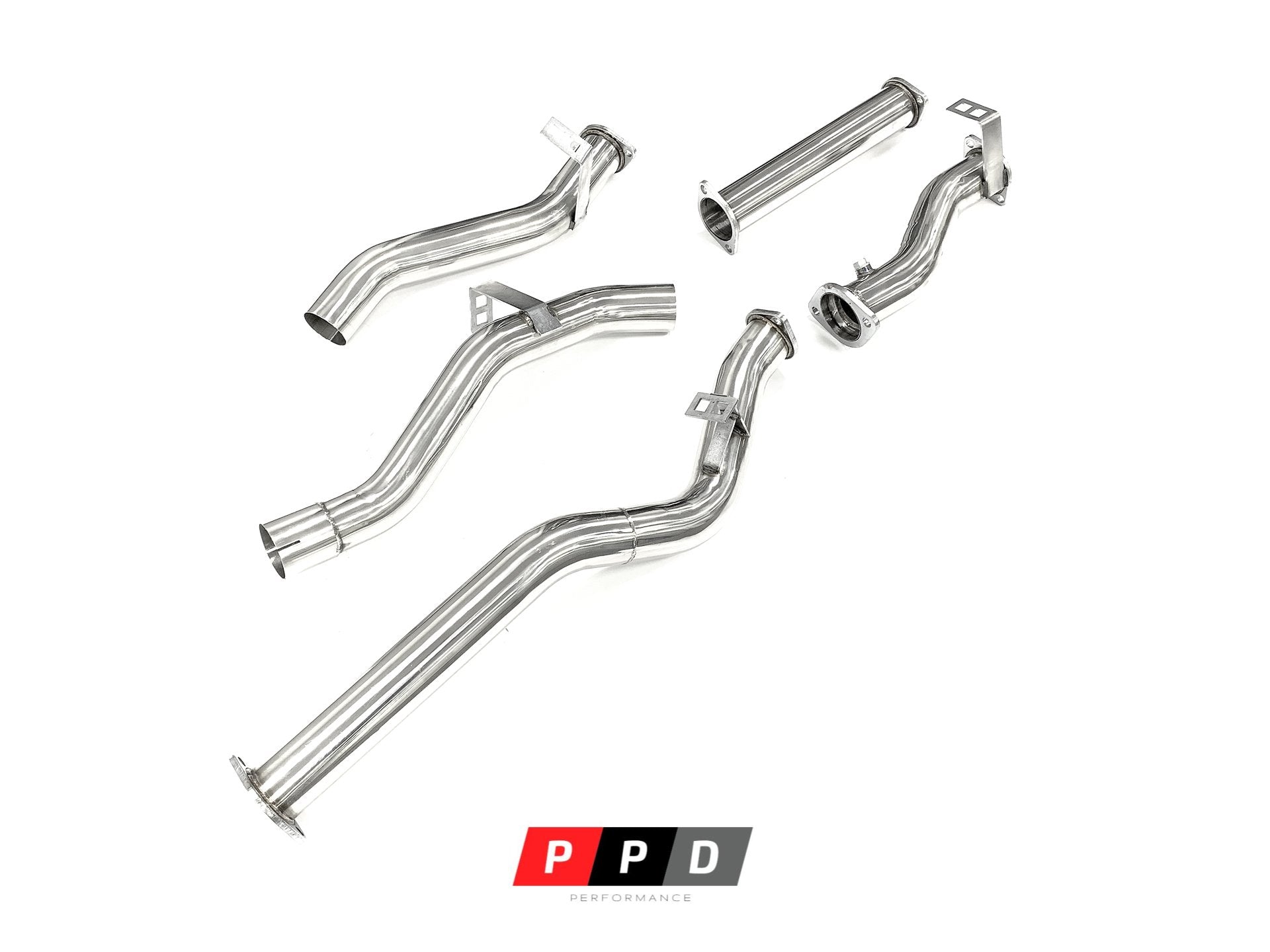 Replace the restrictive factory exhaust system with this brand new PPD Performance Polished Stainless Steel unit.