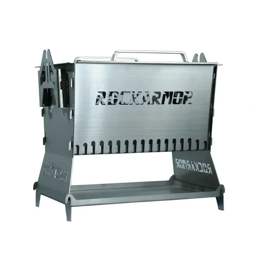 Introducing the Rockarmor fire pit, expertly crafted from top-quality 304 Stainless Steel, ensuring durability and reliability. Perfect for campfires or culinary adventures, it offers swift assembly in just 20 seconds, allowing you to safely enjoy the warmth and convenience without the worry of spreading flames. The Rockarmor fire pit embodies both portability and functionality for memorable outdoor experiences.