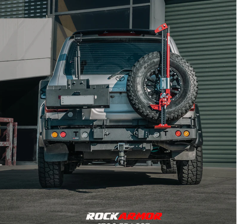 Designed & tested in Australia, Rockarmor’s Gen III Dual Spare wheel carrier has been engineered to cater for the true 4wd tourer who requires the ultimate in spare wheel storage & rear protection.