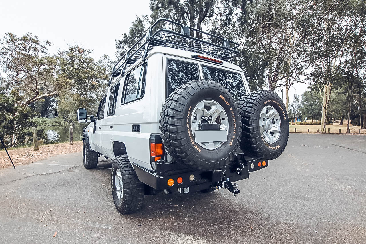 For most 4wd vehicle owners, their spare tyre will be found either on their back door or underneath the vehicle. Both of these standard locations can cause future issues when traveling off-road, either due to the lack of departure clearance when your spare wheel is secured under the vehicle or due to the extreme vibrations the rear door will endure when driving over the thousands of corrugations, which can lead to damaged door hinges, when the spare wheel is secured to the door.
