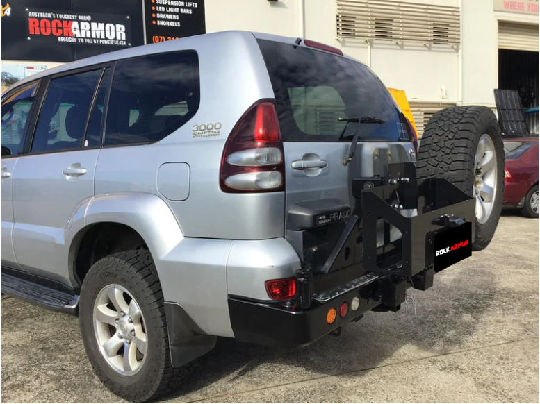 ROCKARMOR GEN III REAR BAR DUAL SPARE WHEEL CARRIER To Suit Toyota Prado 120: