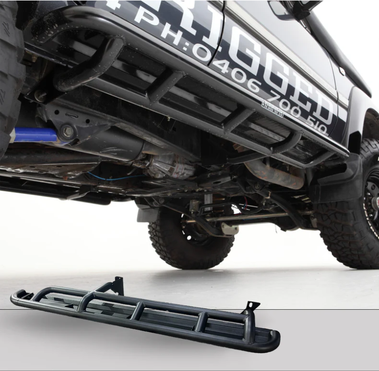 Each step features a modular front cap, that can be removed, which then allows for the connectivity of a Brush Bar side rail, that can be connected to your vehicle’s bull bar, providing your font fenders with protection from any side impact collision’s or potential animal strikes.
