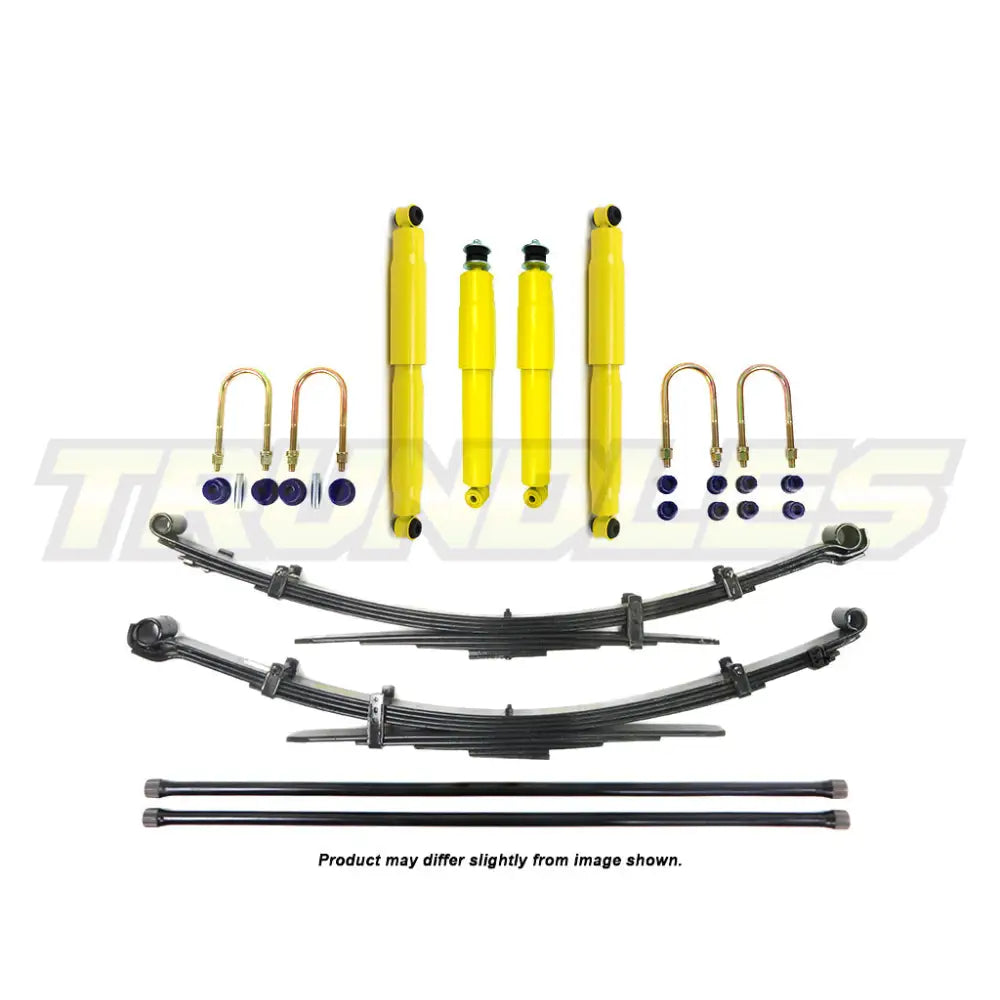 | Kit Contents | 2x Dobinsons Heavy Duty Front Shocks, 2x Dobinsons Heavy Duty Rear Shocks, 2x Dobinsons Rear Leaf Springs, 1x Dobinsons Leaf Bush Kit, 2x Dobinsons U-Bolt Kits |