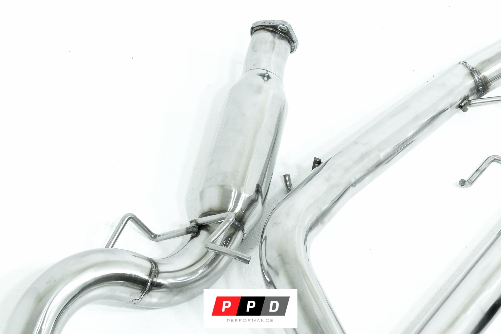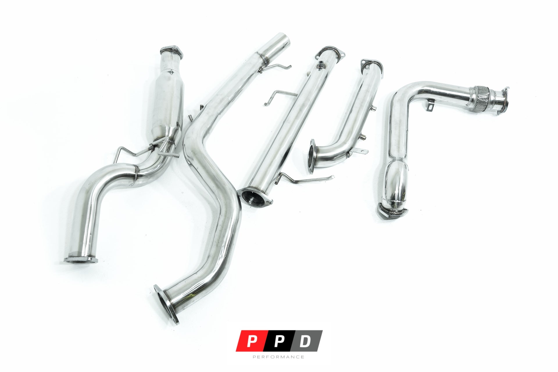 Replace the restrictive factory exhaust system with this brand new PPD Performance Polished Stainless Steel unit.