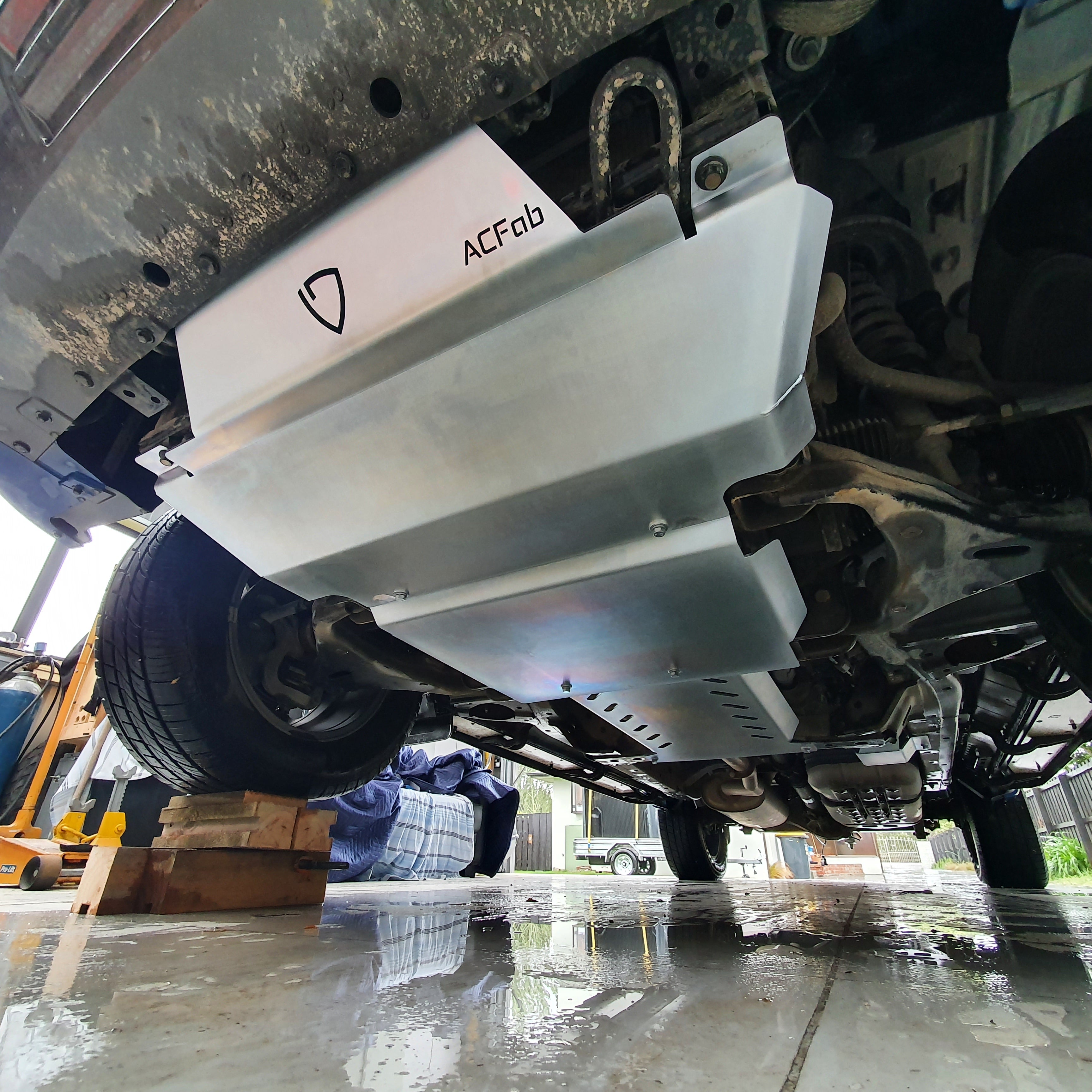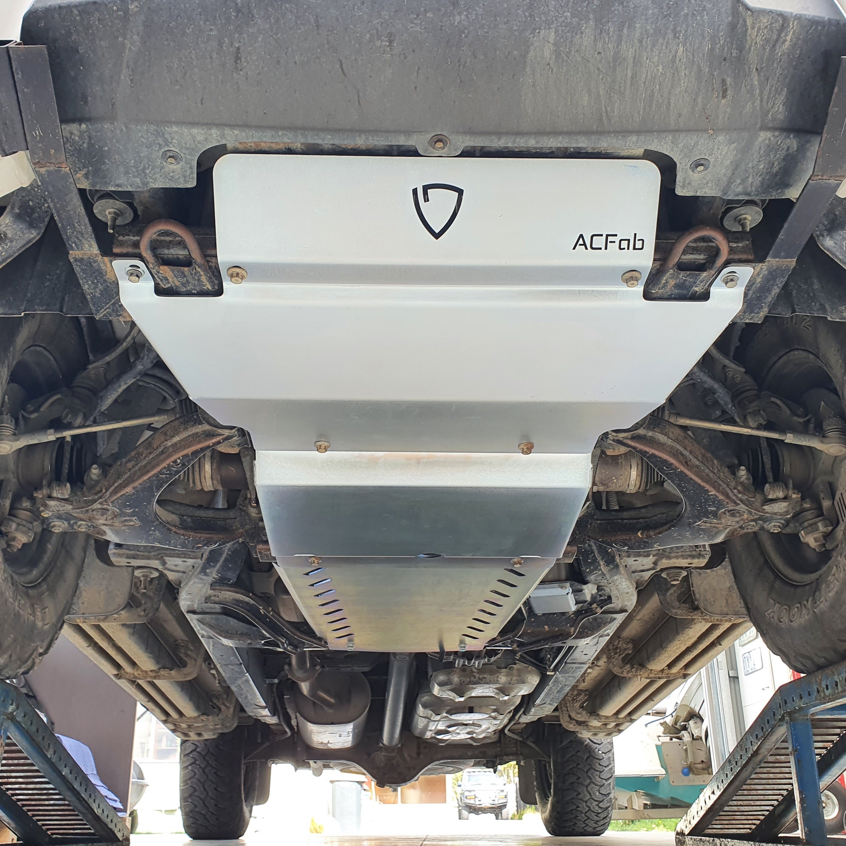 This guard is designed to protect the transfer case and the 4x4 actuator
